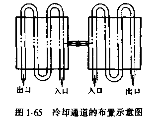 ②塑料熔體在充填型腔過程中,一船在澆口附近溫度較高,因而,應(yīng)加強撓口附近的冷卻,為此,冷卻水應(yīng)從撓口附近開始流向其他地方,如圖1-65所示。