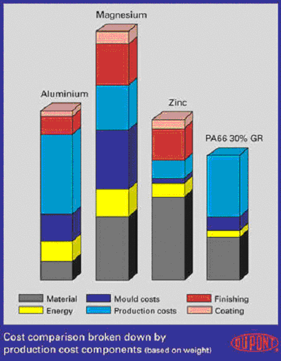 金屬設(shè)計(jì)必須進(jìn)行機(jī)械加工,并經(jīng)常通過許多裝配環(huán)節(jié),才能完成單一部件,與之相反,塑料加工科技則能提供可觀的成本節(jié)約機(jī)會(huì)。