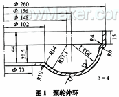 我廠生產(chǎn)的YJH256液力變矩器泵輪外環(huán)(見圖1),就屬于此種類型零件,為適應(yīng)生產(chǎn)需要,設(shè)計了如圖2所示的拉深模具。