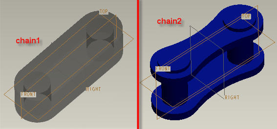 1.先做鏈條的兩個零件chain1、chain2,為了組建的方便,讓零件都關(guān)于top對稱