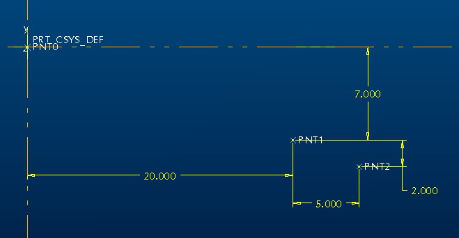 請(qǐng)注意,有一個(gè)點(diǎn)在缺省的坐標(biāo)系上,而另外兩個(gè)點(diǎn)標(biāo)出了尺寸: